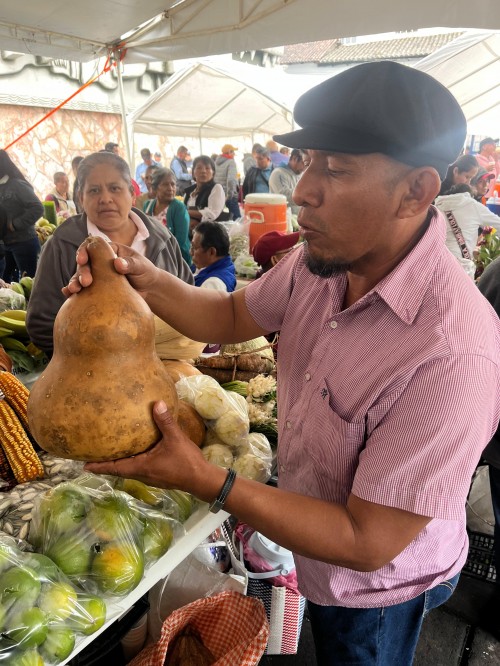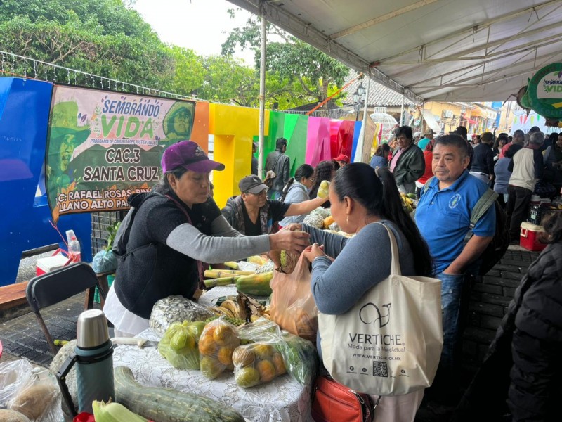 En este importante espacio de convivencia y comercio local, las y los visitantes pueden encontrar maíces criollos, semillas para siembra, hojas de maíz y de plátano, limón, naranja, mandarina, canela, caña, cacahuate, dulces típicos, vainilla, café, chocolate, achiote, mermeladas y jugos, todos libres de agroquímicos y producidos con biofertilizantes, garantizando alimentos sanos y de calidad.