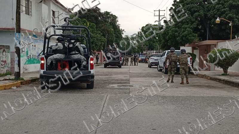 En el operativo participaron efectivos de la Secretaría de Marina, Ejército Mexicano, Policía Estatal, Policía Ministerial y Policía Municipal, quienes descendieron de los vehículos para realizar recorridos a pie en la zona, así como revisiones visuales en automóviles estacionados.