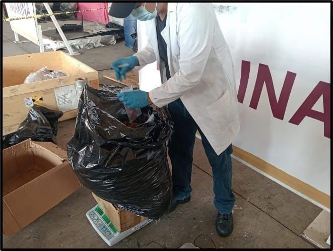 Una vez confirmado el resultado, la mercancía fue asegurada y puesta a disposición de las autoridades competentes para la integración de la carpeta de investigación correspondiente, con el fin de determinar responsabilidades.