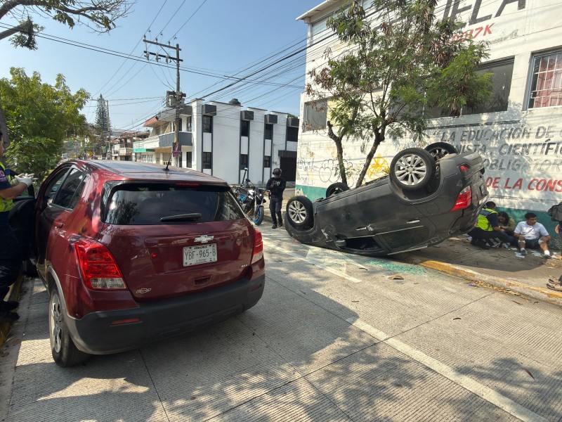 Una camioneta terminó volcada y dos personas resultaron lesionadas tras un fuerte accidente registrado la tarde de este viernes en el fraccionamiento Virginia, en el municipio de Boca del Río.