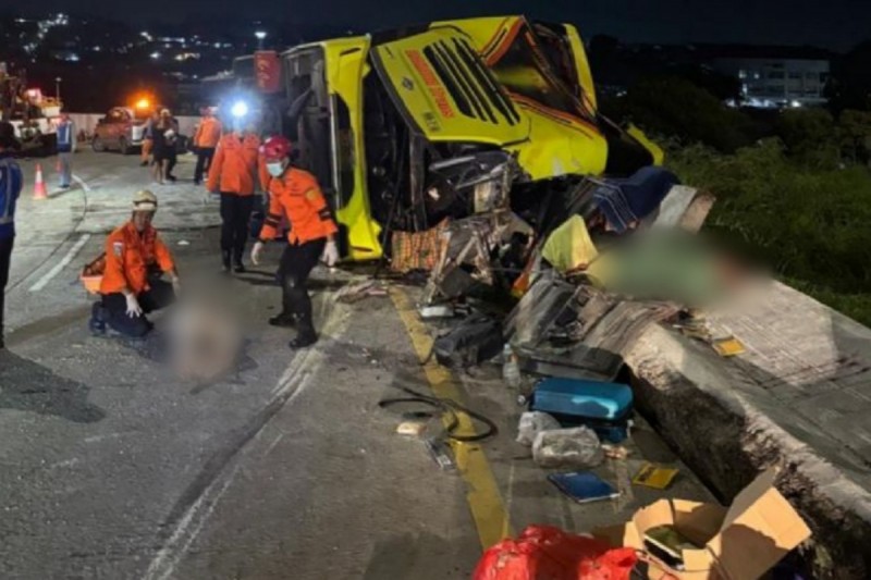 Un autobús de pasajeros sufrió un grave accidente en la carretera de peaje al chocar con una barra de contención, el impacto provocó que se volcara de lado dejando a 16 personas sin vida que viajaban al interior, hay más de 10 heridos tras este hecho que ocurrió en Yakarta, Indonesia.