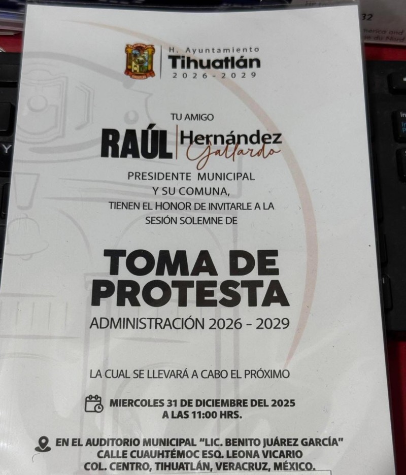 Este día se ha confirmado la toma de protesta del alcalde Raúl Hernández Gallardo, quien dirigirá el Ayuntamiento de Tihuatlán en el periodo comprendido del 2026 al 2029.