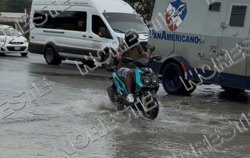 Peligro transitar sobre el boulevard Central Oriente , debido a los enormes baches que afectan el tráfico vehicular, así como en encharcamientos en diversos puntos