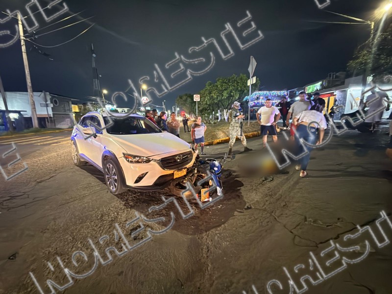 Un motociclista fue arrollado por una camioneta en la Avenida Eje 1 Poniente del fraccionamiento Palmas del Coyol en la ciudad y puerto de Veracruz la noche de este martes 23 de diciembre.