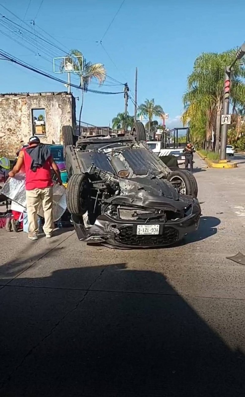 El incidente ocurrió en el cruce de la avenida 3 con calle 24, donde un automóvil compacto Suzuki quedó con las ruedas hacia arriba tras una colisión. De manera preliminar, se indicó que un Nissan blanco habría invadido la preferencia de paso, impactando al otro vehículo y provocando la volcadura.