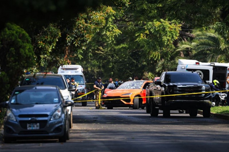 Tres vehículos de lujo —dos camionetas RAM y un Lamborghini Urus— quedaron varados en la vía pública con múltiples impactos de proyectil de arma de fuego. El reporte médico indica que, de los cuatro escoltas lesionados, uno se encuentra en estado crítico, mientras que el resto permanece bajo observación en hospitales locales.