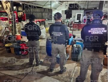 La acción fue ejecutada por la Fiscalía Especializada de Control Regional (FECOR), luego de obtener una orden de cateo para intervenir un predio donde se localizaron alrededor de 550 litros de combustible almacenado, además de cinco sistemas de videograbación, equipo de cómputo y un cartucho útil.