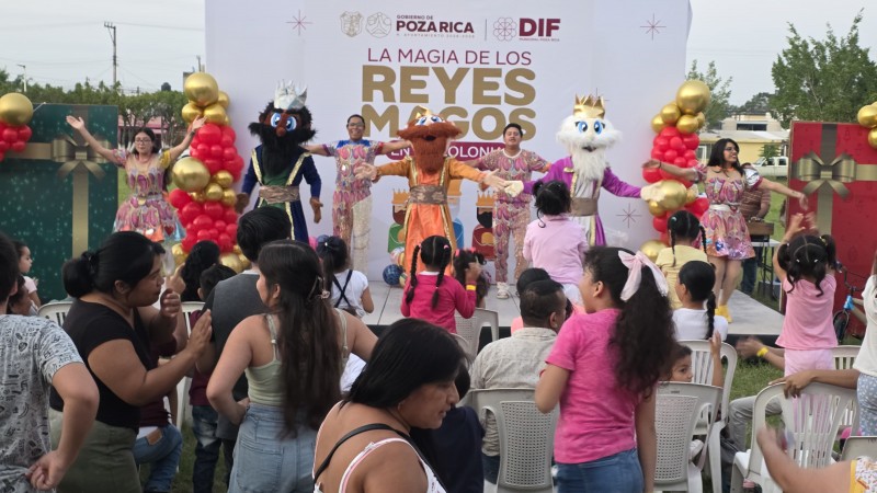 Cientos de niñas y niños del fraccionamiento Las Gaviotas, así como de las colonias La Rueda, Pozo de Cuero y otros sectores aledaños, disfrutaron de una tarde llena de magia y diversión con la llegada de la Caravana “La Magia de los Reyes Magos en tu Colonia”, que este jueves visitó a las familias de esta zona de la ciudad.