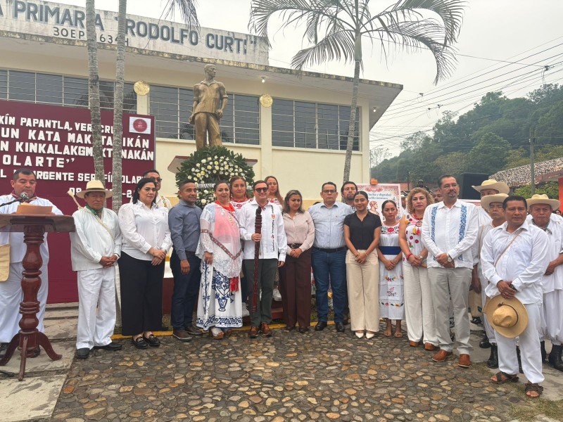 Tras el recorrido, se desarrolló un acto cívico con la participación de la escolta de maestros de Educación Indígena y un coro integrado por docentes de los tres sectores, durante la ceremonia se emitieron mensajes oficiales a cargo del alcalde Gonzalo Flores Castellanos; del tata Gerardo Cruz Espinoza, presidente del Consejo Supremo Totonaco; y del maestro Eleuterio Olarte Tiburcio, maestro emérito de la Dirección General de Educación Indígena.