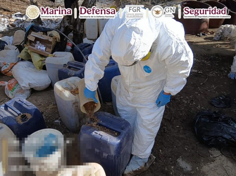 Sinaloa (Poblado Los Cedros): En esta demarcación se desmanteló una instalación donde se detectaron 750 kilos de producto terminado (droga lista para su distribución), además de otros 1,150 litros y 695 kilos de sustancias químicas base.