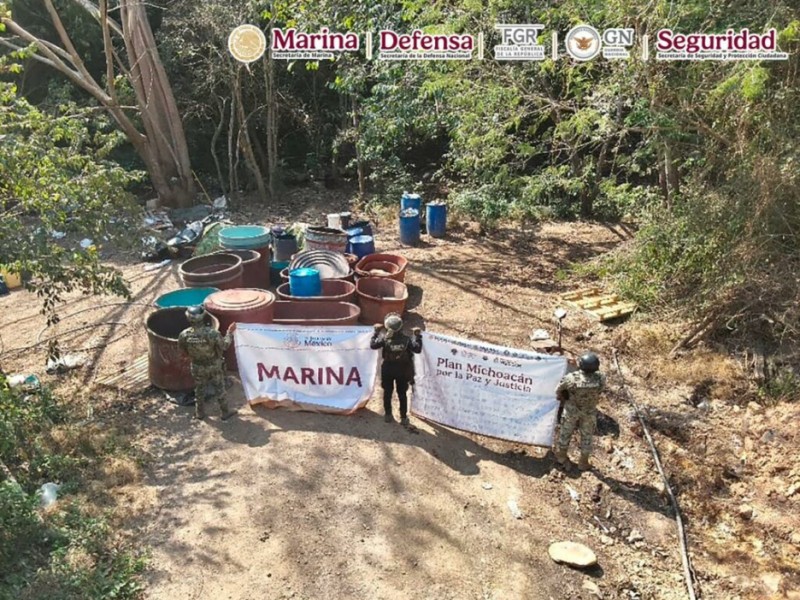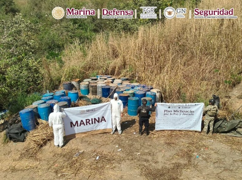 Durango (Localidad de Carricitos): Durante un recorrido terrestre, elementos navales hallaron un centro de producción a gran escala. En el sitio se aseguraron 1,150 litros y 695 kilos de precursores químicos. El complejo contaba con extensas áreas de operación que fueron inhabilitadas por completo.