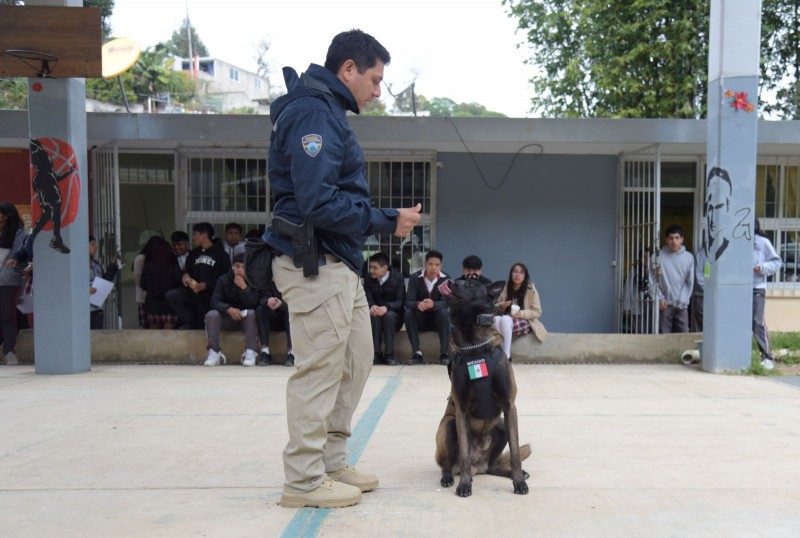 Además, se contó con la colaboración de un elemento canino y un oficial adscrito a la Brigada Animal de la Policía, quien expuso el manejo, control básico y avanzado del binomio, así como las habilidades de obediencia, socialización y trabajo en entornos escolares.