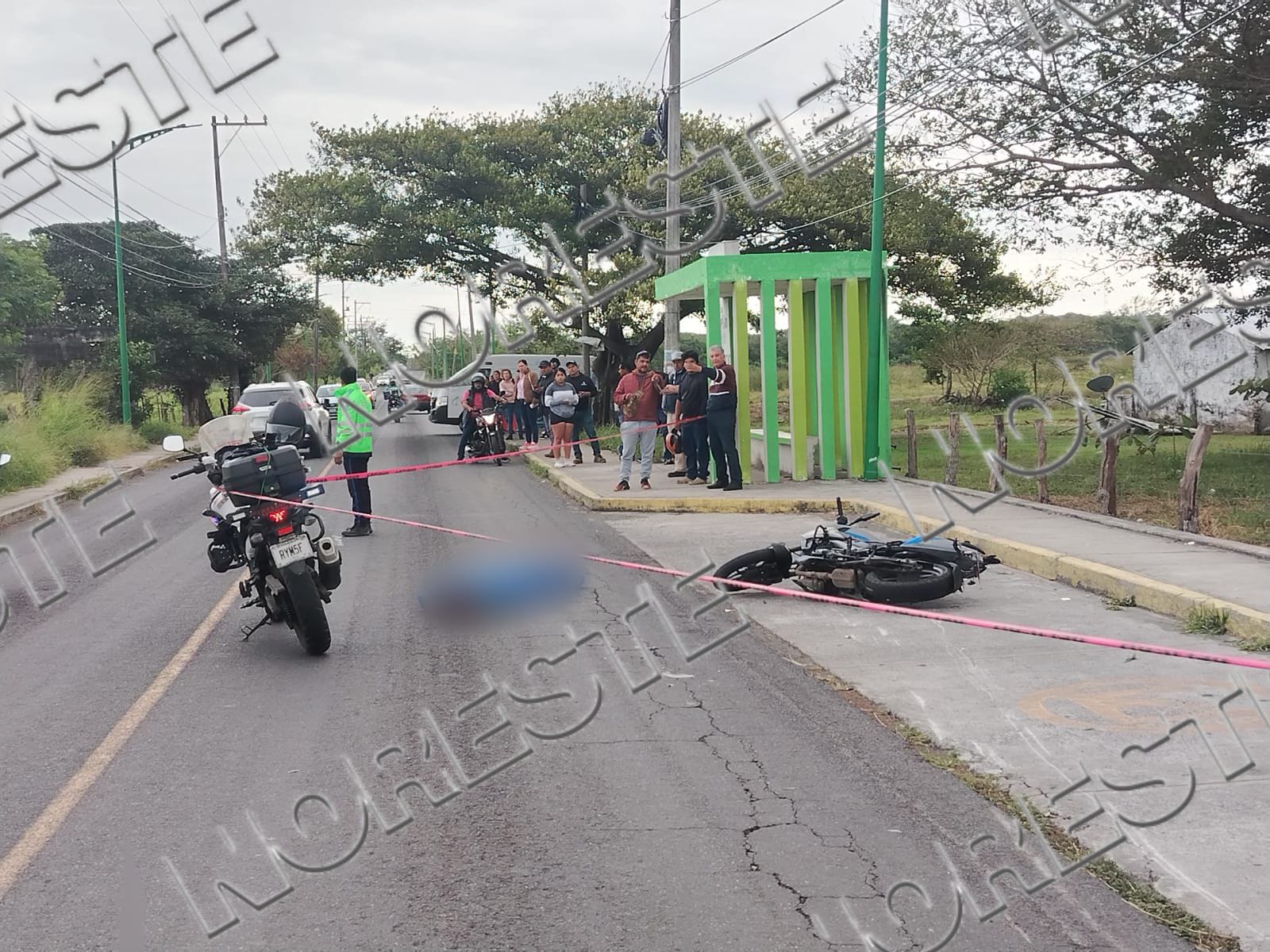 Elementos de Tránsito Estatal acordonaron y abanderaron la zona para evitar otro accidente, mientras que policías municipales aseguraron al conductor de la motocicleta, quien fue revisado por personal médico y no presentó lesiones de consideración.