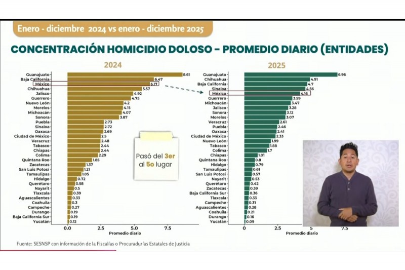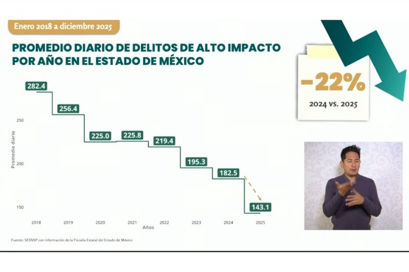 Marcela Figueroa, titular del SESNSP, detalló que esta tendencia a la baja coincide con la implementación de las nuevas estrategias de seguridad coordinadas entre el Gobierno Federal y la administración estatal. Las cifras revelan que el promedio diario de víctimas pasó de 6.63 a 3.06, marcando un hito en la pacificación de la entidad mexiquense.