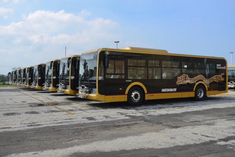 La gobernadora Rocío Nahle García, acudió al Centro de Convenciones de Coatzacoalcos, y acompañada del alcalde Pedro Miguel Rosaldo García, supervisó la primera entrega de unidades híbridas Quetzalli, que se integrarán de manera gradual al proyecto estatal de modernización del transporte público.