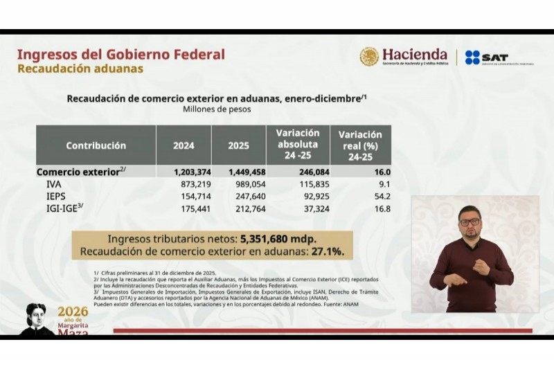 El titular del SAT subrayó que este superávit en la recaudación tributaria es fundamental para dar continuidad a los programas sociales y proyectos de infraestructura de la administración actual, asegurando la estabilidad de las finanzas públicas para el arranque del 2026.