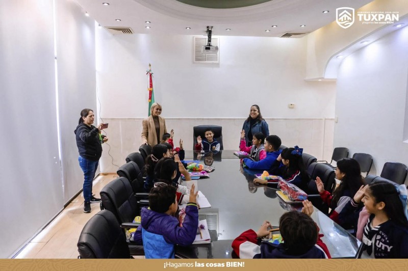 Alumnas y alumnos del quinto grado de la Escuela Primaria José María Morelos y Pavón, ubicada en la colonia Miguel Alemán Valdez, realizaron una visita al Palacio Municipal de Tuxpan como parte de una actividad educativa para conocer el funcionamiento de la administración pública local.