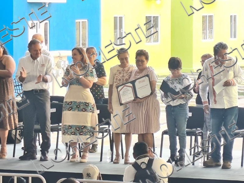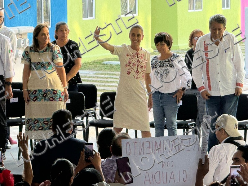 En el fraccionamiento ahora nombrado Bosques de Río Medio, la mandataria presidió un evento en el que derechohabientes recibieron las llaves de sus nuevas casas, bajo el programa de impulso a la vivienda del Gobierno Federal.