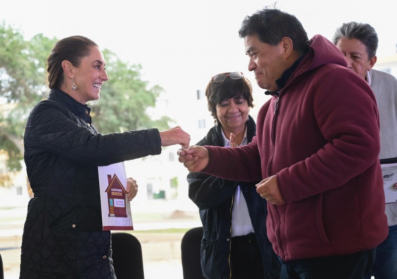 En Reynosa, Tamaulipas, la Presidenta de México, Claudia Sheinbaum Pardo, encabezó la entrega de 44 viviendas del desarrollo Florencia a derechohabientes del Instituto del Fondo Nacional de la Vivienda para los Trabajadores (Infonavit), como parte del programa Vivienda para el Bienestar.