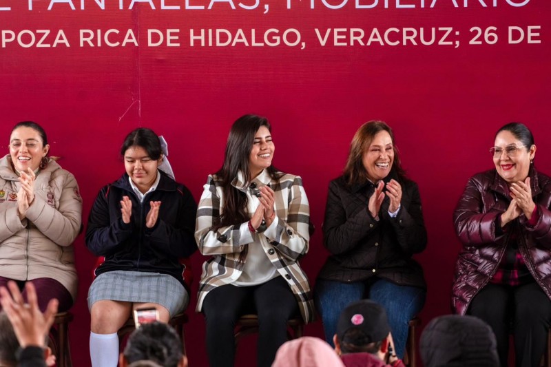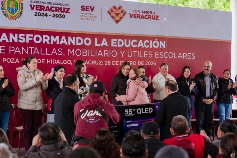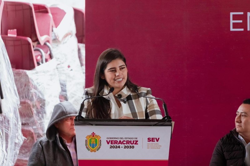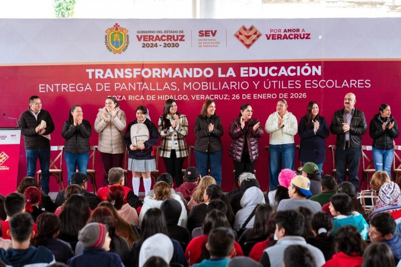 En el marco de su visita a Poza Rica, la Gobernadora realizó también la entrega de mochilas, mobiliario, útiles escolares y pantallas, como parte de las acciones para fortalecer la educación y mejorar las condiciones de los centros escolares.