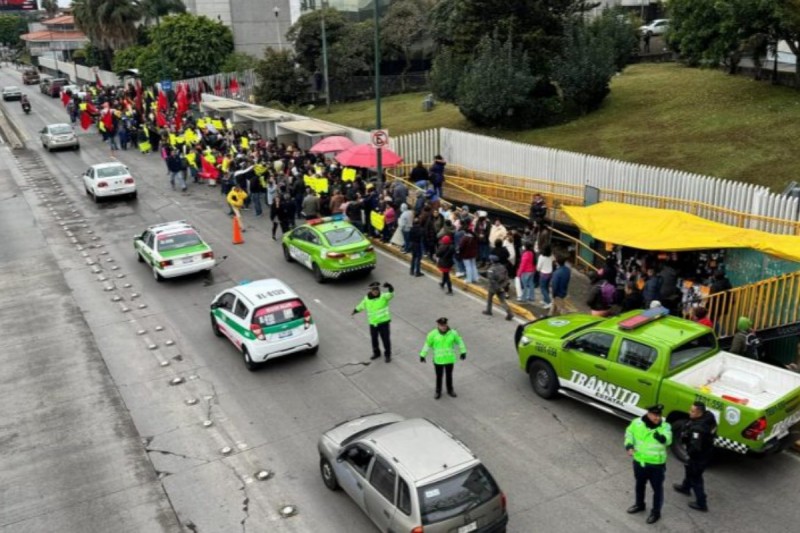 Personal de la Dirección de Tránsito del Estado y elementos de seguridad pública se desplegaron en el área para abanderar la protesta y agilizar el tránsito en los carriles centrales.