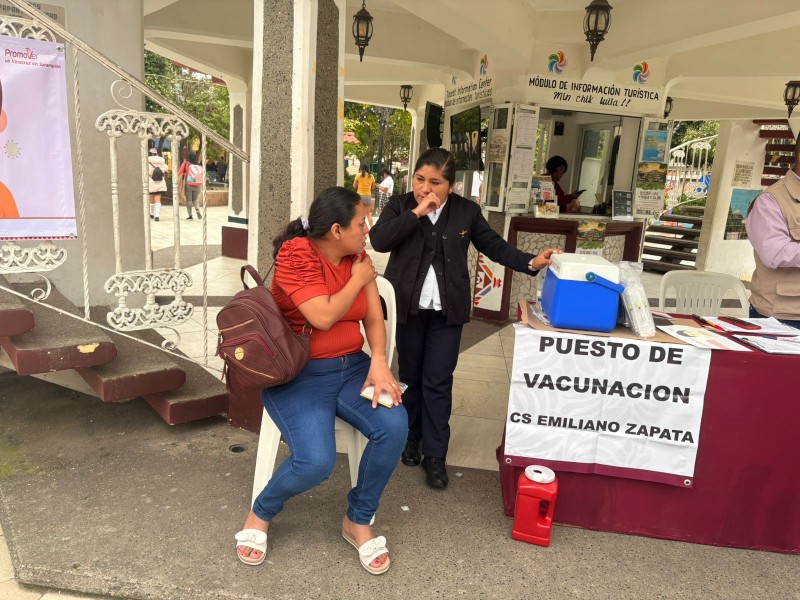 El Centro de Salud de la colonia Emiliano Zapata instaló un módulo de vacunación para la aplicación de dosis contra influenza, neumococo y sarampión, esta última dirigida principalmente a niñas y niños menores de cinco años, como parte de las acciones preventivas en materia de salud pública.