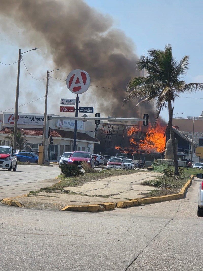 Los hechos se registraron la tarde de este jueves 29 de enero, cuando sujetos armados, presuntamente a bordo de motocicletas, arribaron al establecimiento localizado a la altura de la colonia Las Palmas. De acuerdo con los primeros reportes, los agresores arrojaron artefactos incendiarios contra la palapa de palma, provocando un fuego que se propagó rápidamente y consumió por completo el negocio.