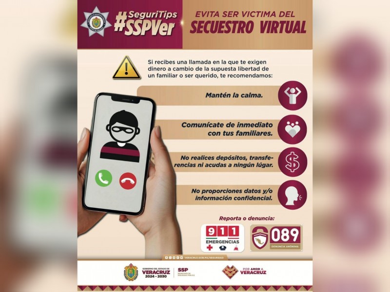 El H. Ayuntamiento de Cazones, encabezado por el Presidente Municipal Humberto Olvera Torres, en coordinación con la Dirección de Seguridad Pública y los tres niveles de gobierno, exhorta a la ciudadanía a mantenerse informada y alerta ante el delito de secuestro virtual, una modalidad de extorsión que busca generar miedo y confusión mediante llamadas telefónicas falsas.