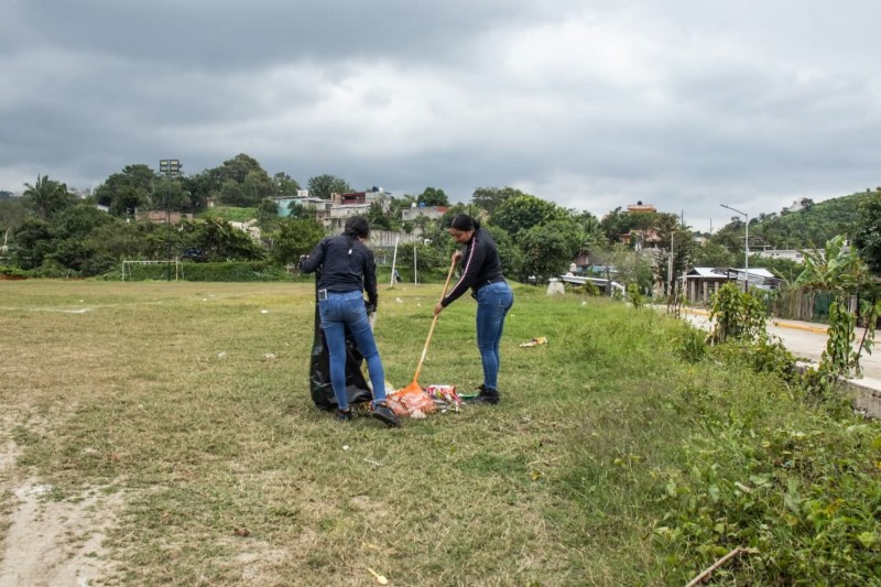 Como parte de esta jornada, elementos de la Policía Municipal, Protección Civil y vecinos del municipio unieron esfuerzos para llevar a cabo labores de limpieza, rehabilitación y mejoramiento en el campo Infonavit Coatzintla, ubicado en la colonia Ampliación Camioneros. Las acciones incluyeron el retiro de maleza y basura, acondicionamiento del área y recuperación de espacios destinados al deporte y la recreación.