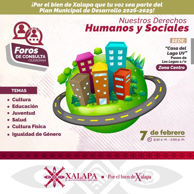 El primer foro, en el que se abordará el eje “Nuestros derechos humanos y sociales”, se realizará a partir de las 9:30 horas en la Casa del Lago UV, ubicada en la zona del Paseo de los Lagos.