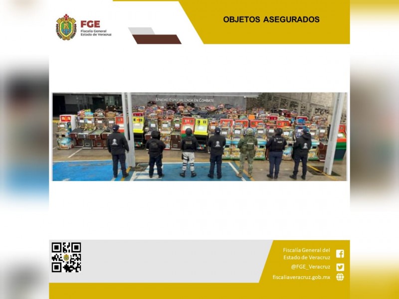 Durante el desarrollo del cateo fueron aseguradas 180 máquinas tragamonedas, presuntamente pertenecientes a un grupo delictivo, cuyo modo de operar se presume, consistía en la expansión y colocación de dichas máquinas en establecimientos comerciales, exigiendo el cobro de derecho de piso a quienes se negaban a permitir su instalación.