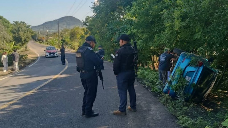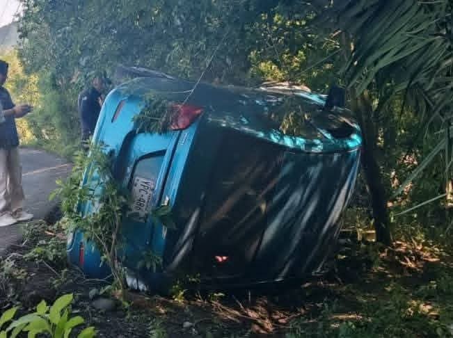 La falta de precaución y la velocidad y moderada, fueron causas de que el conductor de un automóvil particular perdiera el control y terminara volcado fuera de la carpeta asfáltica, accidente en el que afortunadamente los ocupantes del vehículo resultaron ilesos.