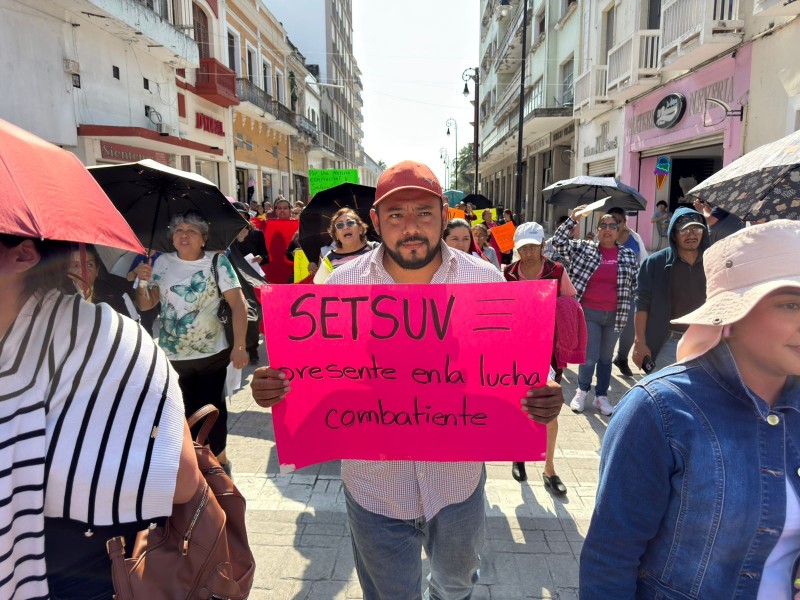 Integrantes del Sindicato Estatal de Trabajadores al Servicio de la Universidad Veracruzana se manifestaron este miércoles 4 de febrero para exigir un aumento salarial del 20 por ciento.