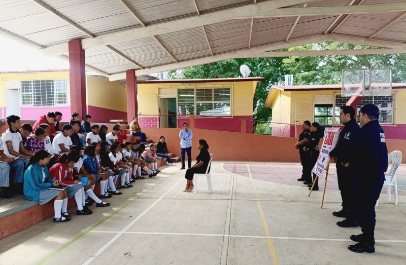 Con el firme compromiso de proteger la integridad física y emocional de la niñez y juventud del municipio, agentes de Seguridad Pública Municipal llevaron a cabo el taller “Extorsión Escolar”, dirigido a estudiantes de la Telesecundaria José María Morelos y Pavón, ubicada en las calles Siervos de la Nación y Clavel, en la colonia Morelos.