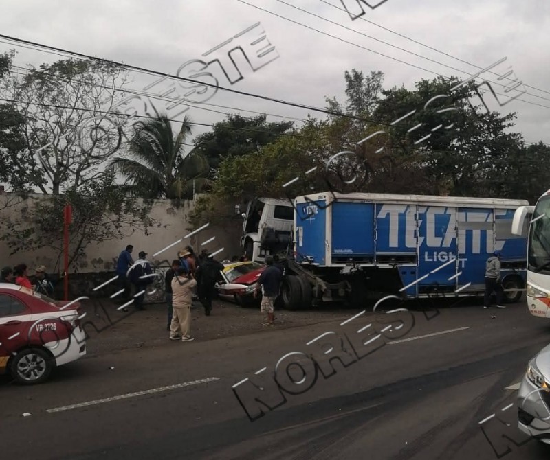 Posteriormente, el camión terminó su carrera aplastando materialmente al taxi marcado con el número económico 5004 VB.