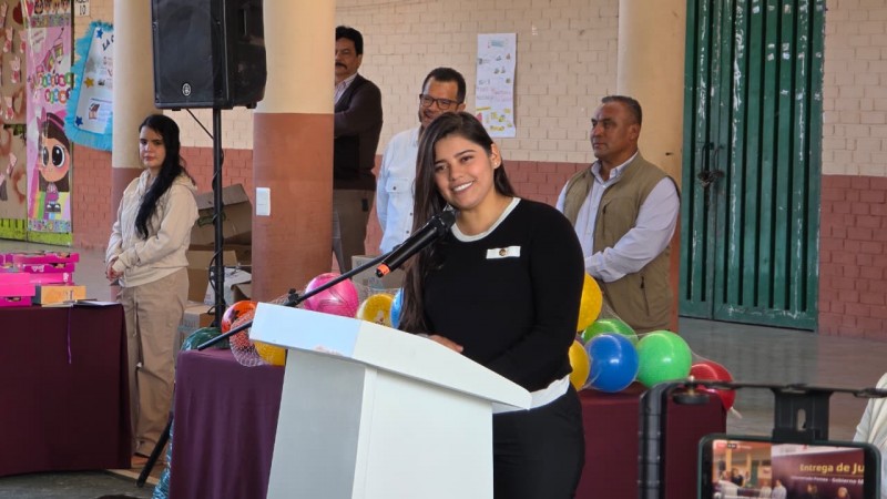La presidenta municipal Adanely Rodríguez Rodríguez y la presidenta honoraria del Voluntariado de Petróleos Mexicanos (Pemex), María Felicia Jiménez Lavie, realizaron la entrega de juguetes a niñas y niños de la Escuela Miguel Alemán Valdés, generando sonrisas y momentos de alegría entre la comunidad estudiantil.