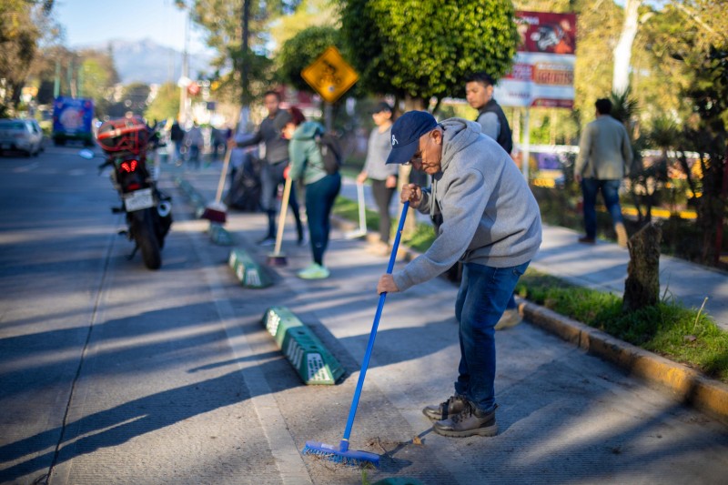 En la jornada participaron aproximadamente 250 personas, quienes atendieron diversos tramos estratégicos mediante labores de pintura de espacios y señalización, así como barrido manual de calles y banquetas, obteniendo la limpieza general del entorno.