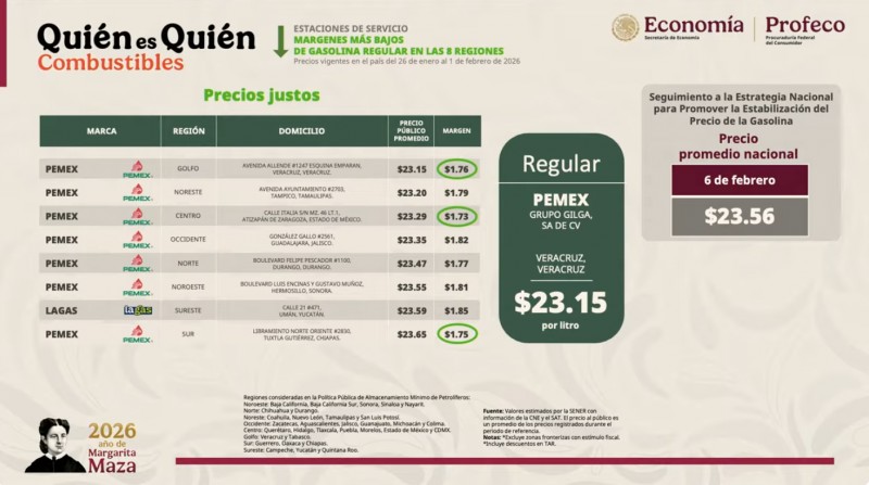 En el marco de la "Mañanera del Pueblo", la administración federal destacó a la ciudad de Veracruz como un punto de referencia en la estabilidad de precios de los combustibles. Durante el reporte semanal de "Quién es quién en los precios de los combustibles" de este 9 de febrero de 2026, el titular de la Procuraduría Federal del Consumidor (Profeco), Iván Escalante Ruiz, detalló la situación operativa en el puerto.