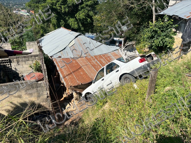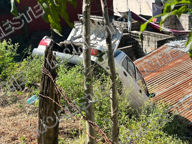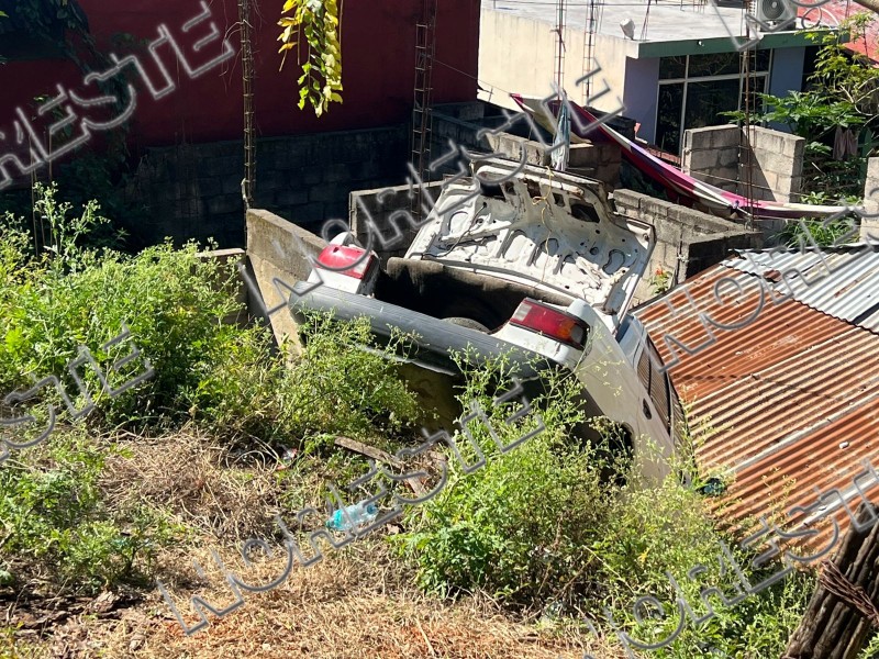 Esta tarde se registró un accidente vehicular sobre la calle Tamaulipas, en la colonia Cerro de la Cruz, luego de que una unidad que se encontraba estacionada terminara cayendo a un barranco, presuntamente tras botársele la velocidad.