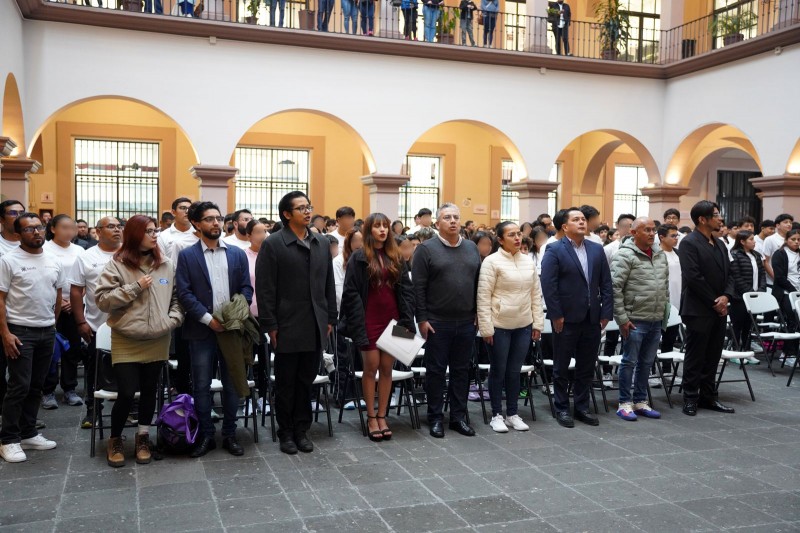 En el acto también estuvieron presentes el entrenador de levantamiento de pesas Luis Tapia Arizmendi, titulares de las Direcciones Municipales, así como estudiantes de la Escuela Secundaria Experimental, quienes realizaron los honores a la bandera.