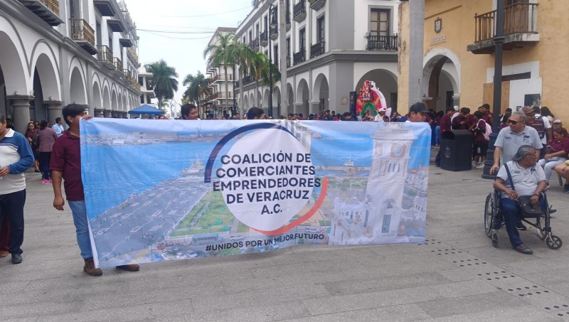 La mañana de este jueves 12 de febrero, comerciantes informales de la ciudad y puerto de Veracruz se manifestaron para exigir que se les permita trabajar libremente durante las fechas en las que se realizará el Carnaval 2026.