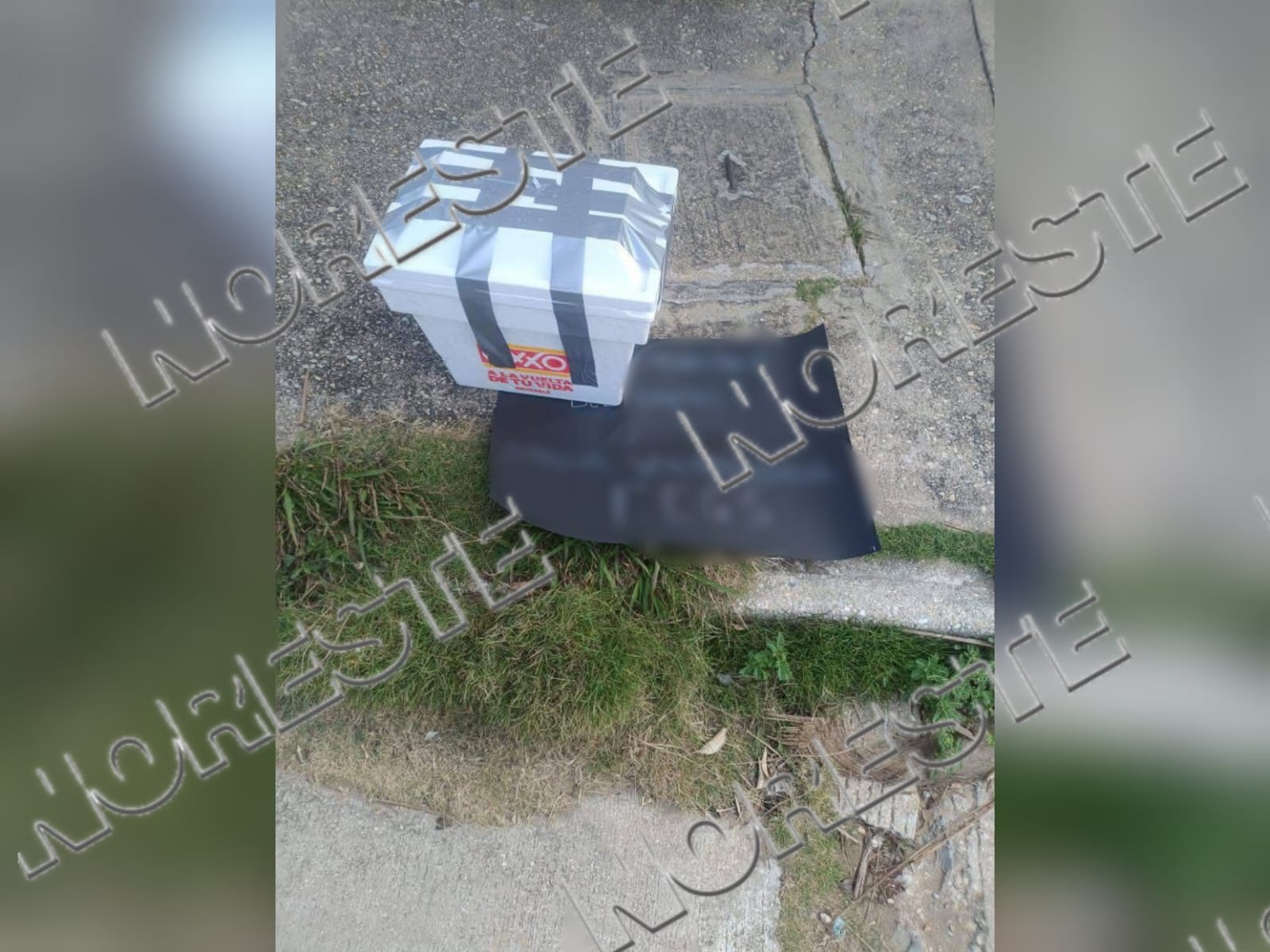 De acuerdo con los primeros informes, en el interior se encontraba la cabeza de un hombre, junto a una cartulina con un mensaje firmado presuntamente por un grupo delictivo que opera en la región. La hielera fue localizada a un costado de una palmera, situación que llamó la atención de habitantes del sector.