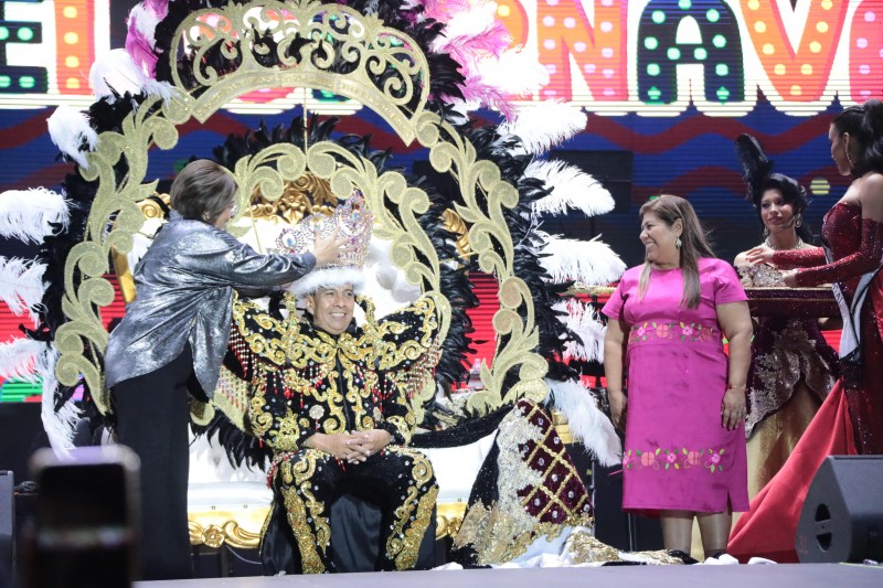 Ambas impusieron la corona al Rey de la Alegría, Bernardino Jiménez Revueltas, Yayo I; así como a Princeso I, Mario Ucha, y a Princeso II, Jorge Yair Torres Espejo, quienes asumieron oficialmente su papel como máximos representantes del espíritu festivo de esta edición 102 del Carnaval.