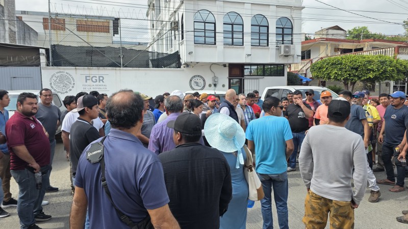 Integrantes de la Asociación de Transportistas y Suministradores de Agua de la Zona Norte de Veracruz se manifestaron en las instalaciones de la Fiscalía General de la República, luego de la detención de tres de sus compañeros y el aseguramiento de dos unidades en el municipio de Tihuatlán, exigiendo transparencia en el proceso y una pronta resolución de la situación legal.