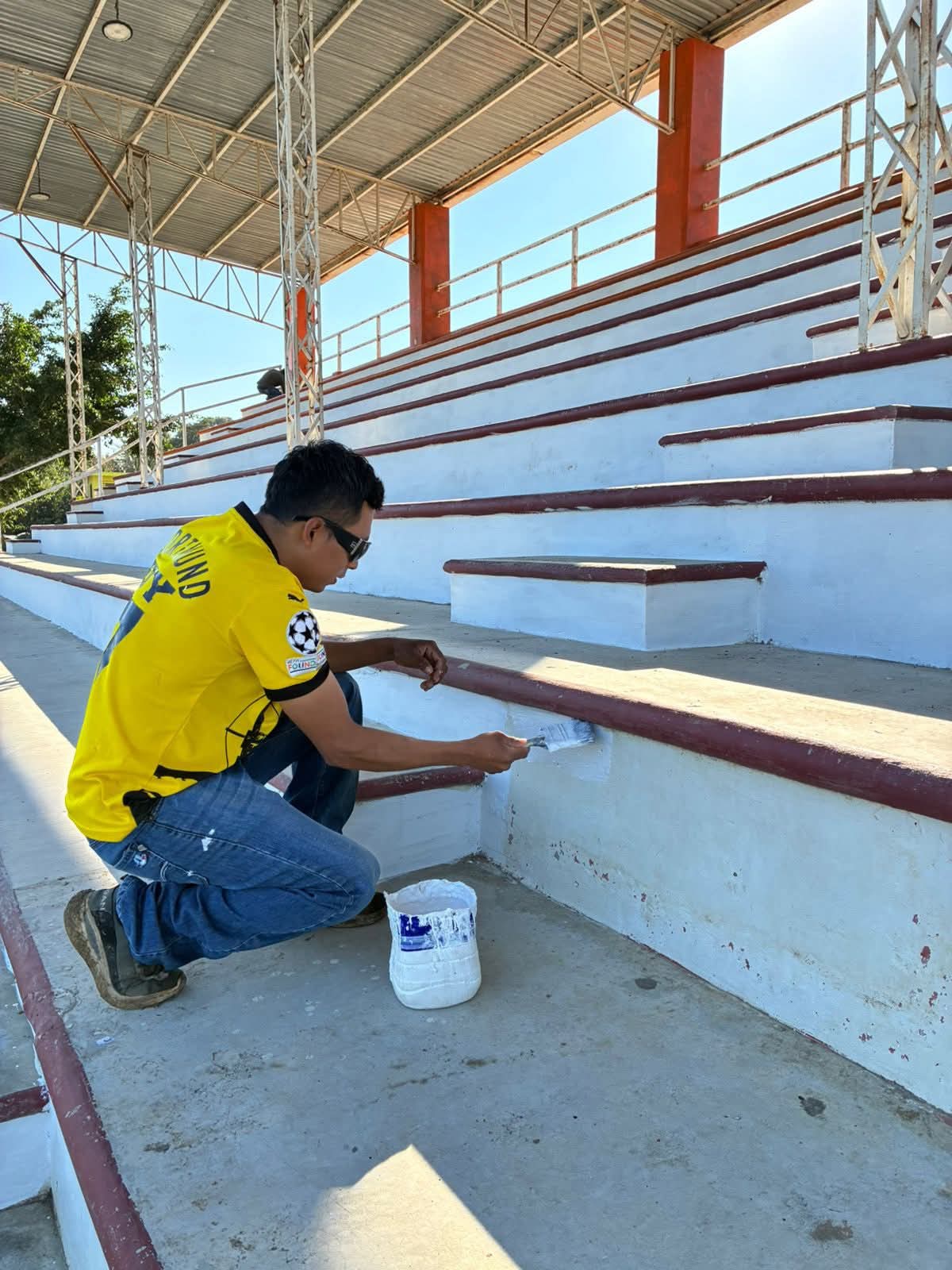 En esta ocasión, las labores se enfocaron en el mantenimiento y pintura de las gradas, acciones que permitirán mejorar la imagen del recinto y ofrecer mayor comodidad a quienes asisten a encuentros deportivos y actividades recreativas. Estas tareas forman parte de un programa permanente de rehabilitación de espacios públicos que impulsa la actual administración municipal.