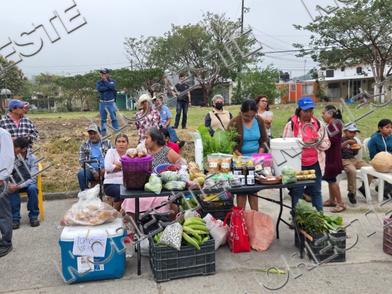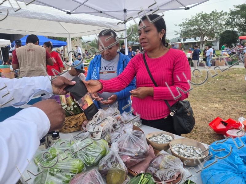 En el evento participaron comerciantes del campo inscritos en el programa federal Sembrando Vida, quienes llevaron sus productos directamente a la cabecera municipal para su comercialización.