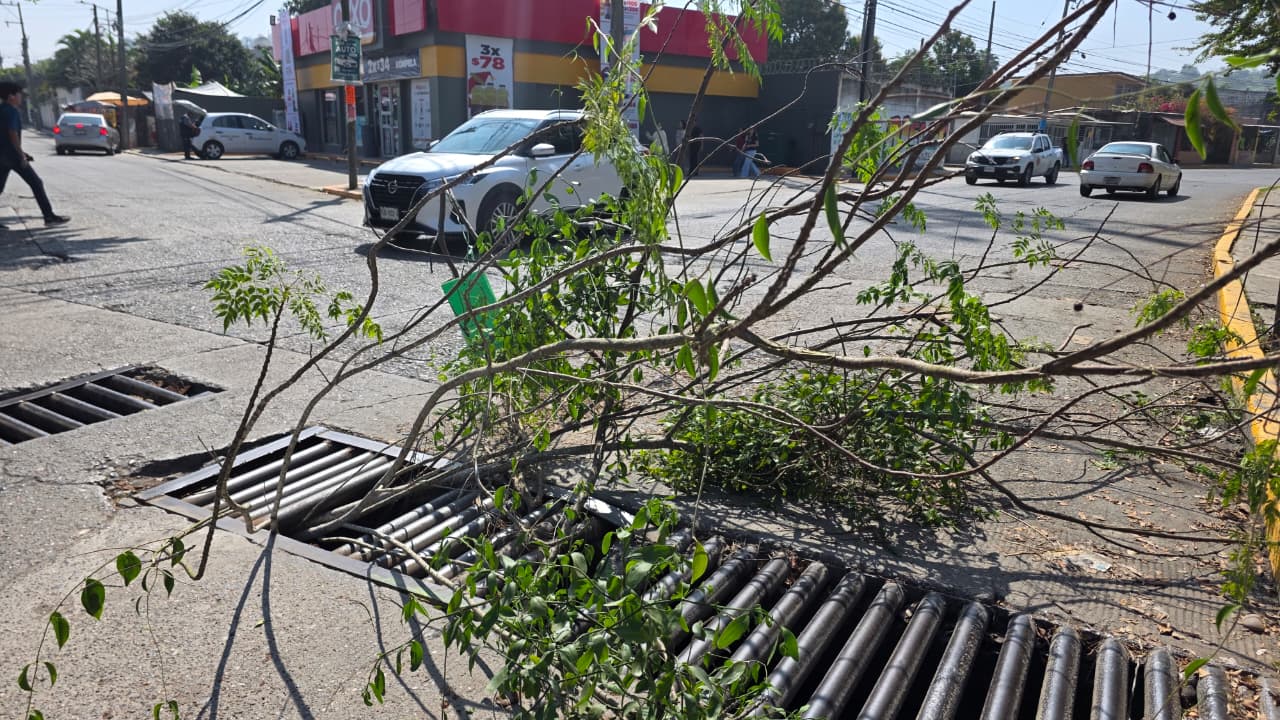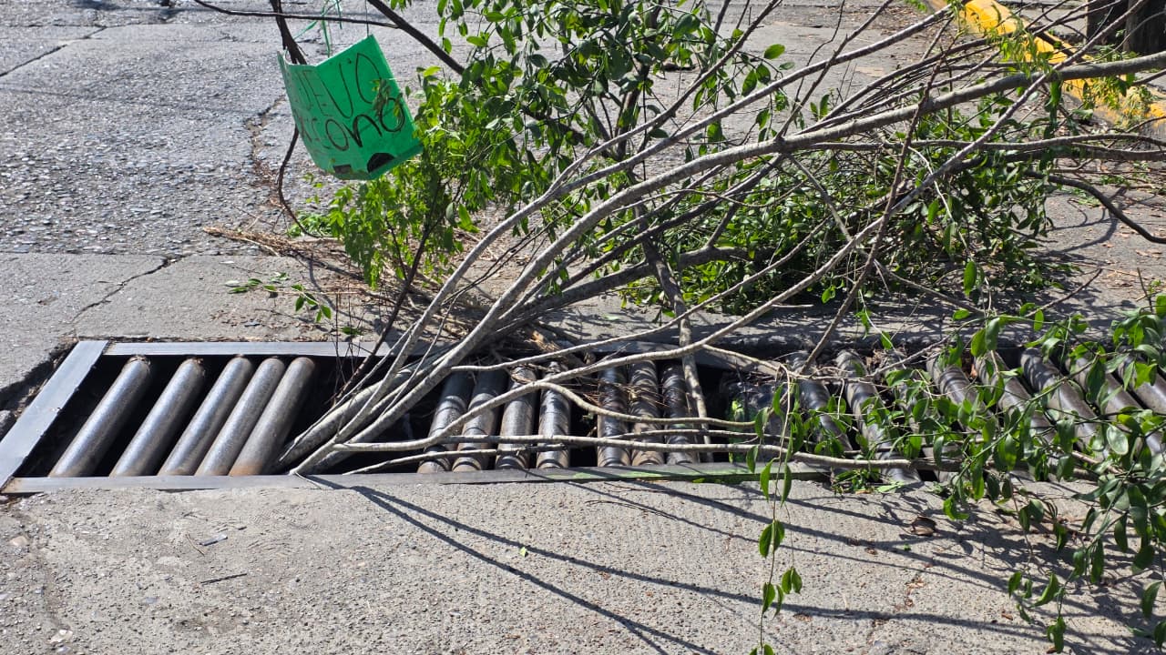 Ante el riesgo inminente, fueron los propios vecinos quienes colocaron troncos y ramas dentro del hueco para señalizar provisionalmente el área y evitar que algún vehículo cayera en lo que calificaron como una “trampa mortal”.