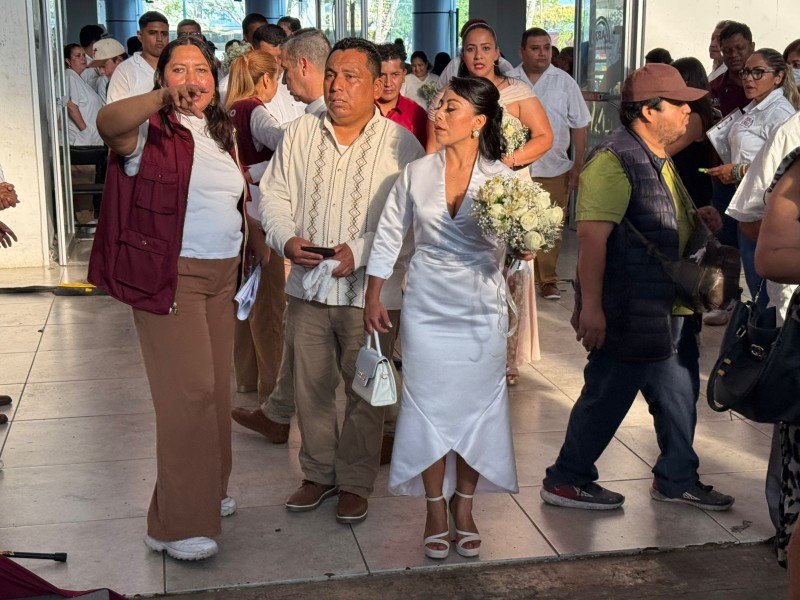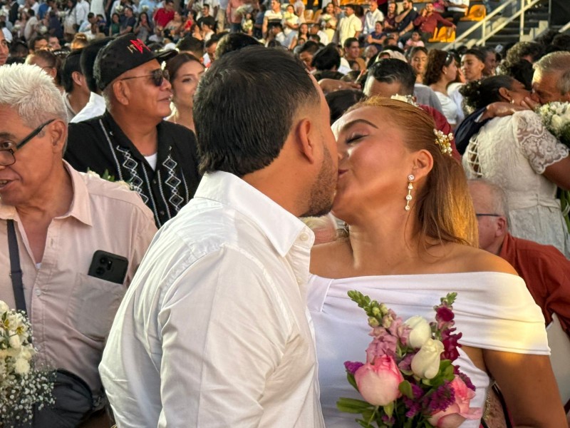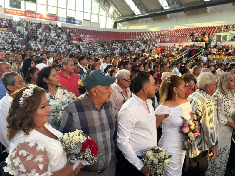 Más de mil parejas contrajeron nupcias este viernes 20 de febrero durante la celebración de bodas colectivas organizada por el ayuntamiento de Veracruz, encabezado por Rosa María Hernández Espejo.