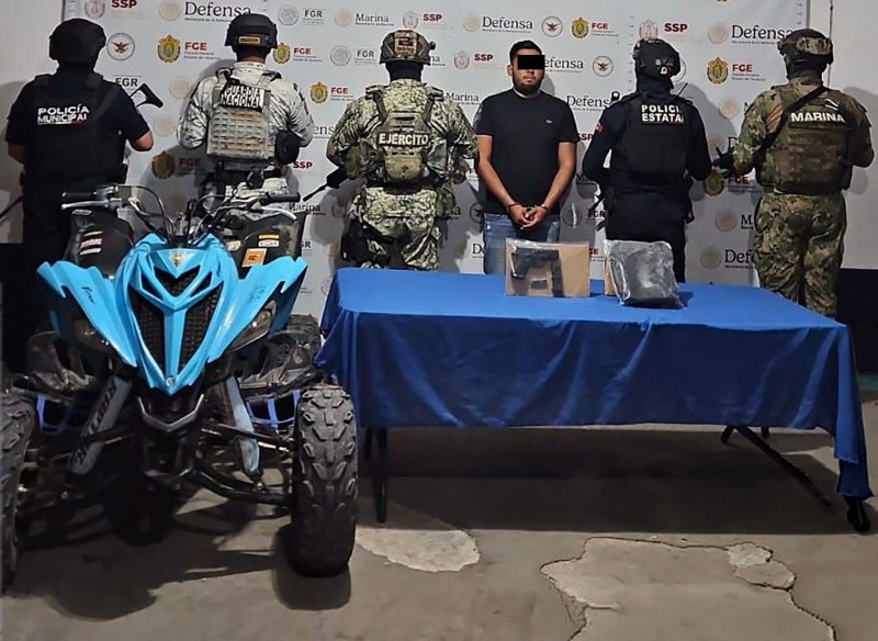 También se aseguraron 49 dosis y cinco bolsitas de una sustancia con características del cristal, 46 dosis, 10 bolsas y 11 bolsitas de hierba verde con las características de marihuana; un arma de fuego larga, cartuchos útiles y cargadores; equipamiento táctico; vapeadores; teléfonos celulares, radios; una tableta y una computadora portátil; pipas de vidrio; básculas; cuatro automóviles y dos motocicletas sin reporte de robo.