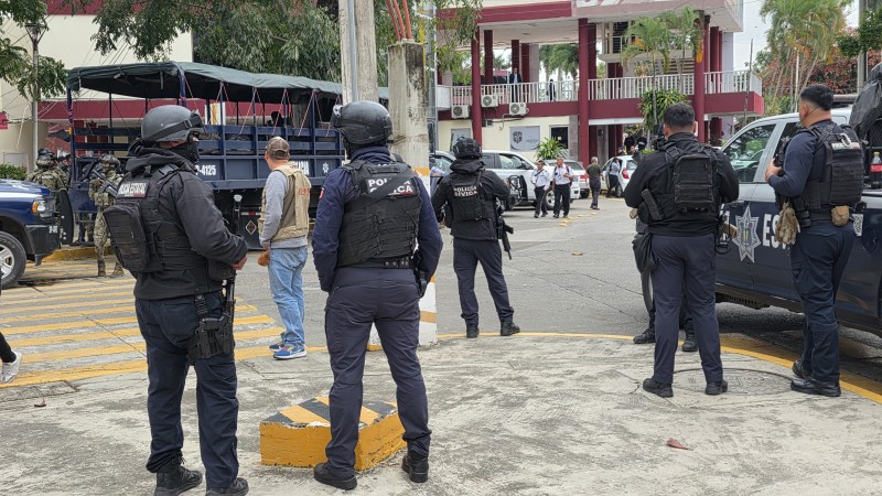 Desde temprana hora del lunes, elementos de la Policía Estatal, incluido el agrupamiento antimotines, así como personal de la Marina desplegaron unidades y efectivos en los accesos y alrededores del inmueble, como parte de una estrategia de supervisión y control.